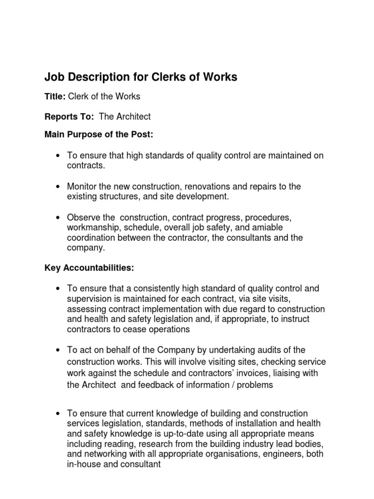 Job Description Clerk Of Works Pdf Architect General Contractor